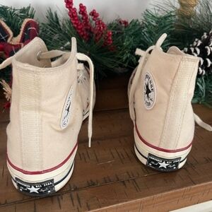 Converse High-Top Canvas Sneakers in Beige with Red Accent