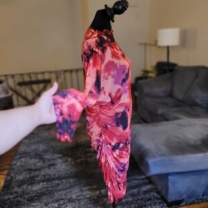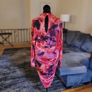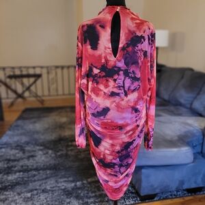 NWOT Bold Elements Pink Watercolor Ruched Long-Sleeve Dress Size XL