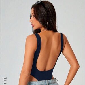 This sleek blue bodysuit features a square neckline and a fitted silhouette, perfect for a modern and versatile look. The cut-out design adds a touch of elegance, making it a stylish addition to any wardrobe.