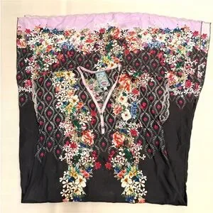 • Embroidery and print at bodice and hem