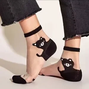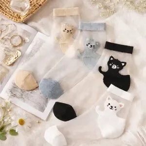 Keywords: cat socks, sheer socks, cute socks, cartoon cat socks, cat lover gift, kawaii socks, Harajuku style, ankle socks, aesthetic socks, cute accessories