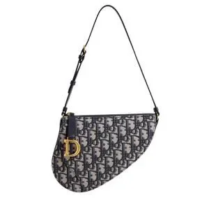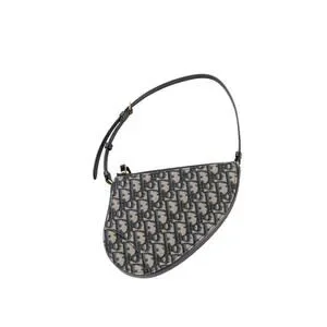 CHRISTIAN DIOR Blue Canvas Logo Saddle Shoulder Pouch