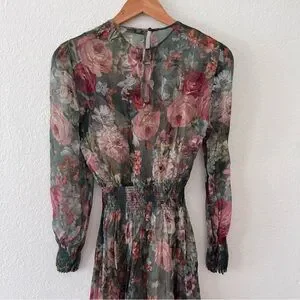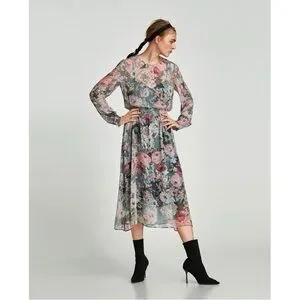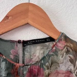 Zara Rare Viral Floral Sheer Midi Dress Sz M