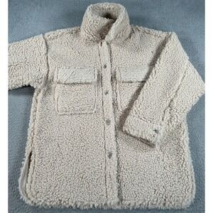 H&M Shirt Jacket Women's Small Beige Teddy Shacket Shearling Cozy Oversized.