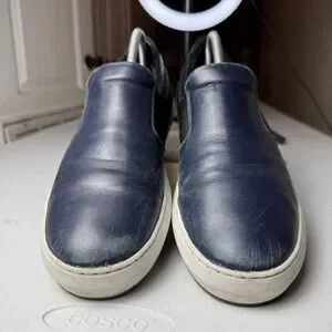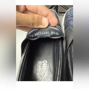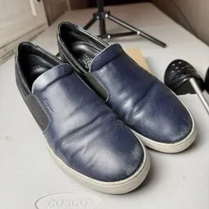 Salvatore Ferragamo Men Sz 8.5 EE Loafers navy leather uppers slip-on sneakers