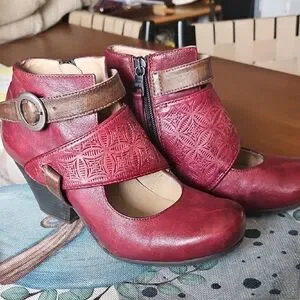 Miz Mooz Burgundy Cutwork Leather Ankle-Strap Heels