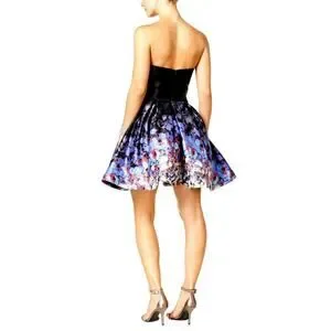 Betsy & Adam Black Satin Floral Strapless Fit & Flare Party Dress