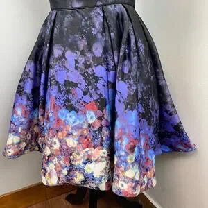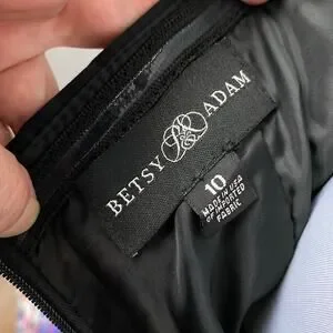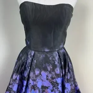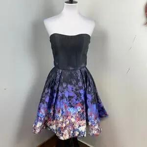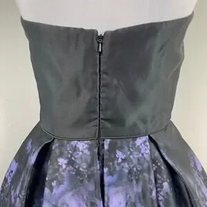 Betsy & Adam Black Satin Floral Strapless Fit & Flare Party Dress Size 10