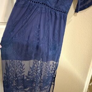 Boutique Navy Lace Maxi Dress with Sheer Details