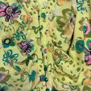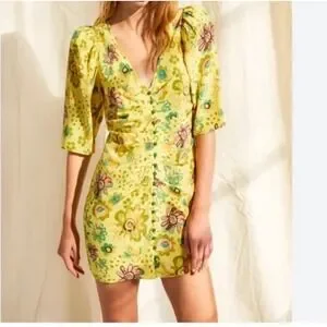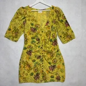 Le Fou Wilfred Yellow Floral Silk Ruched Button Front Mini Dress Size 10
