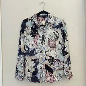 Chicos Mystic Mix Geneva BoHo Silky Shirt Blouse Button Down Paisley Size Small