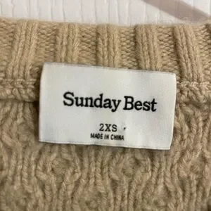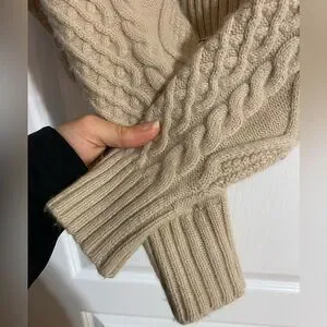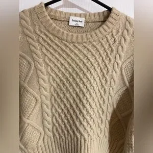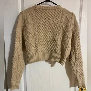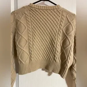 Aritzia Sunday Best Peggy Cropped Merino Wool Cable Knit Cream Brown Tan Sweater