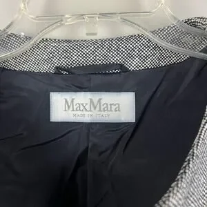 Elevate your wardrobe with this stunning MaxMara Italy gray tweed blazer! Crafted from a luxurious blend of virgin wool and silk, this piece exudes sophistication and timeless elegance.