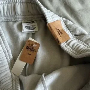 Comfortable super light grayish white sweatpants with an elastic waistband and cuffed ankles. Soft, breathable fabric designed for everyday wear and light activity. Bling PINK down the left leg
