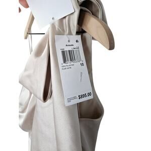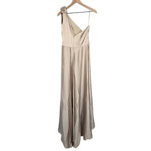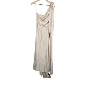 Amsale Dress Size 10 Bow One Shoulder Satin Maxi Gown in Champagne Light Gold