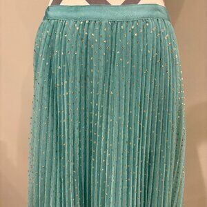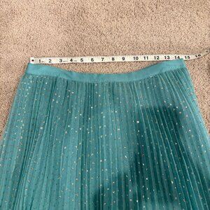 J.Crew Pleated Tulle A-line Midi Skirt in Mermaid Aqua Blue Metallic Gold Dot