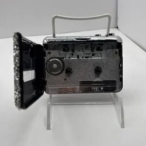 The product is a portable cassette player with CD playback capabilities, silver in color and connects via USB. It features a cassette tape converter function and is part of the Walkman product line. The device is ideal for capturing music from cassette tapes and converting it to CD format for a digital library. Its compact design and AM/FM radio capabilities make it a versatile and convenient option for music enthusiasts looking to port their cassette tapes to a digital format.