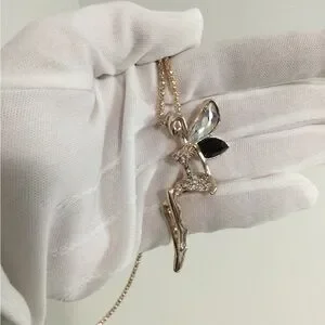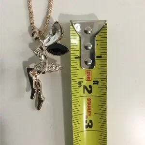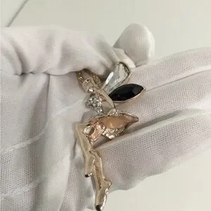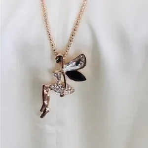 * There is a piece missing on the bottom of the Fairy, that’s why the price is low * But in all is Unnoticeable, it’s an Elegant gold-tone fairy pendant necklace featuring black and clear crystal accents. Delicate design adds a feminine touch to any outfit. Perfect for gifting or everyday wear.
