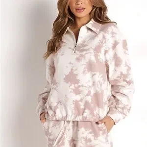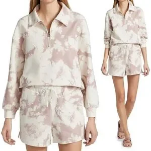 Tags: Varley, Romero Sweat, Taupe Tie Dye, Neutral, Size Large, L, Half Zip, Quarter Zip, Pullover, Cotton Blend, Elastic Waist, Cinch Waist, Boxy Fit, Dropped Shoulder, Athleisure, Night Luxe, Soft Girl Aesthetic, Wellness, Yoga, Travel Outfit, Casual Chic, Loungewear.