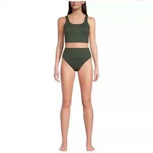 Land end High-Waist Ribbed Olive Green Tank Bikini Set