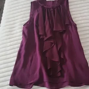 Alice+ Olivia Elisa Bitten Berry High-Neck Ruffle Blouse 100% Silk