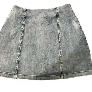 Classic button-front denim skirt in light blue. Features a flattering A-line shape and functional front buttons. Versatile for casual or dressed-up looks. Comfortable, structured denim perfect for everyday wear.
