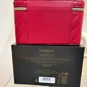 Yves Saint Laurent Quilted Red Cosmetic Case with Gold Hardware