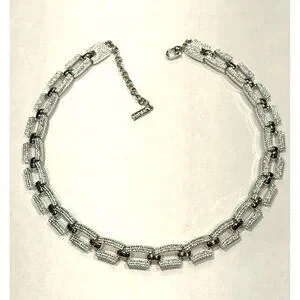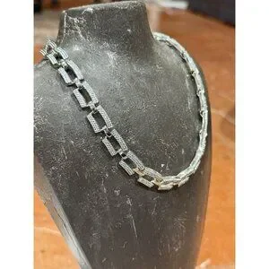 NAPIER VINTAGE SILVER TEXTURED 14-16" RECTANGULAR CHAIN LINK NECKLACE EUC