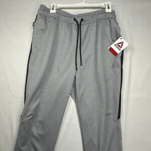 Reebok Mens Tapered Slim Joggers Gray Black Ankle Zip Sweatpants Medium NWT