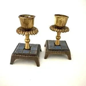 JUDAICA Vintage Candlestick Holders Brass with Blue Enamel
