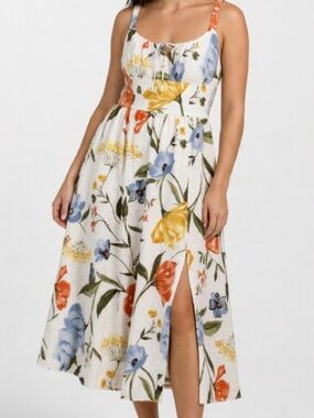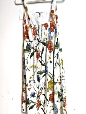 Ellen Tracy Linen-Blend Dress Midi Sleeveless White Floral Sz 10 NWT
