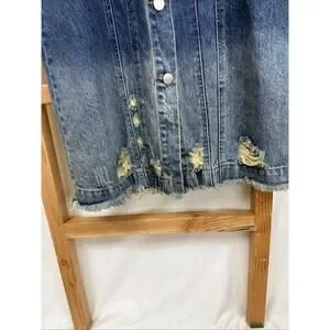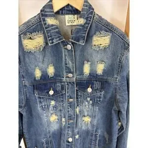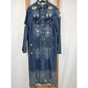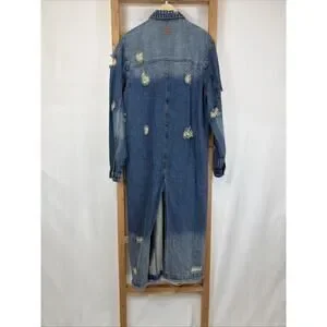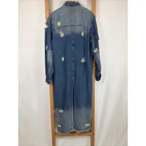 NWT Jade Gypsy Blue Distressed Denim Long Duster Jacket #1391 Size S M