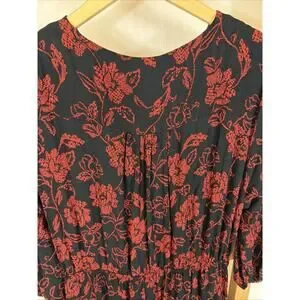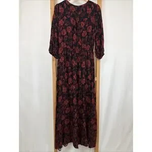 NWT Apricot Black Red Floral Pattern Maxi Long Dress #1387 Size XL