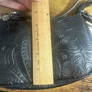 Charter Club Faux Leather Black Embossed Small Shoulder Bag 7.5x5in Chic