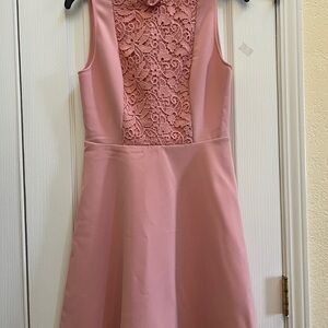 Zara Blush Pink Lace Panel Fit & Flare Mini Dress Ruffle Neck Coquette Feminine