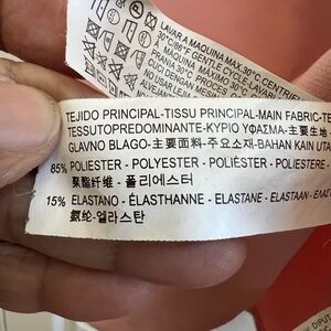 Fabric: 85% Polyester, 15% Elastane (slight stretch)