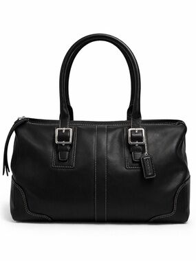 Beautifully crafted Coach leather satchel in a structured silhouette with refined buckle detailing and polished silver hardware. This piece blends timeless design with everyday functionality.