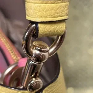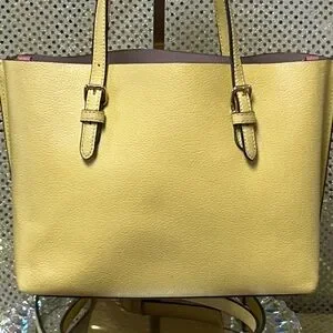 Coach Yellow Leather Tote with Charm and Gold Logo Approx. 13 x 8 x 3.5