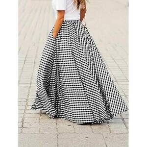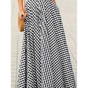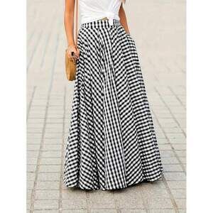 Women's Elegant Plaid Mid-Length High Waist Flared Skirt With Draping Effect, Sp