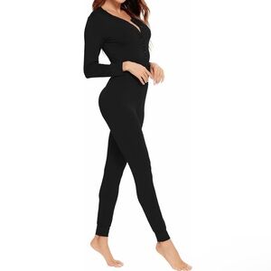 LECGEE Pajama Jumpsuits Adult One Piece Sleepwear Size Medium Black NWT