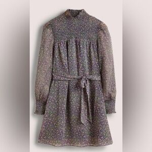 BODEN Smocked Yolk Floral Dress Tie Waist 8 NEW. 1323