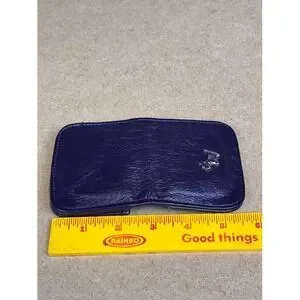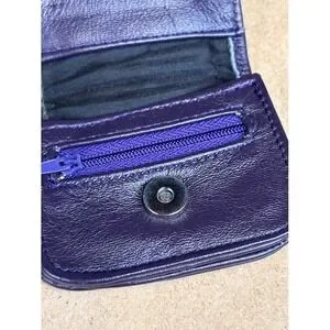 Compact purple leather card holder with a silver Scottie dog emblem. Sleek design for organized everyday use. Soft leather construction and easy-access slots. Stylish purple color adds a refined touch.
