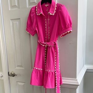 Avara Pink Scallop-Trim Tie-Waist Mini Dress -NWT