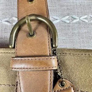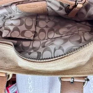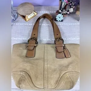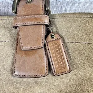 Coach Tan Suede & Leather Tote with Logo Hang Tag
