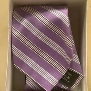 Bloomingdale's RL tie in a beautiful lavender color. Made from 100% silk and handcrafted in China. Brand new and unused. The box has a little tear as shown in the picture.