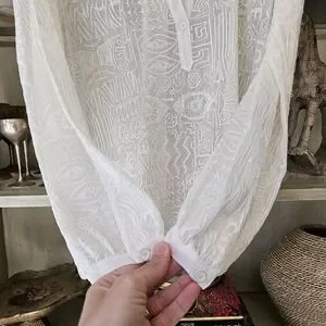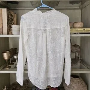 Rebecca Taylor Ivory Sheer Silk Azteca Embroidered Boho Blouse