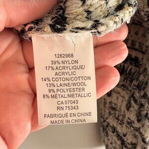• Nylon, acrylic, cotton, wool blend with metallic fibres
