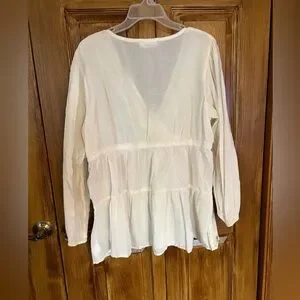 Lucky Brand Cream Embroidered soft Striped Blouse Size XL