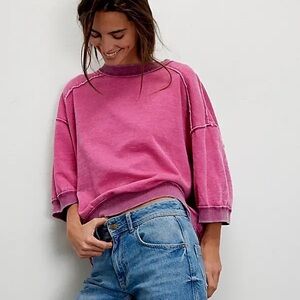 NWOT We The Free Everything Pullover Sweatshirt in Size SMALL. Color way is Pink Roses. Current style, sold out color at FP.