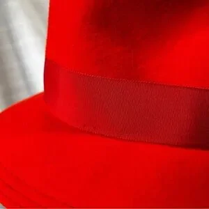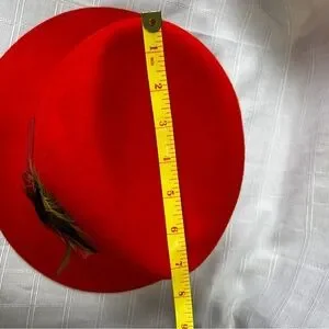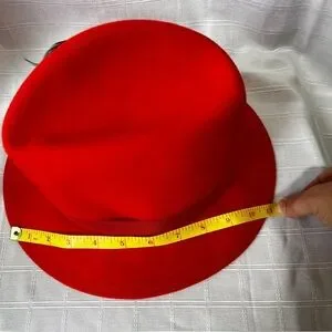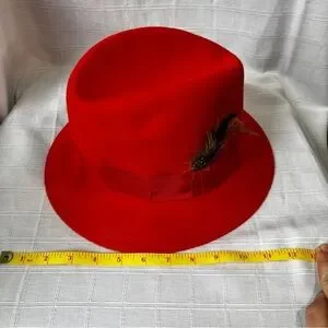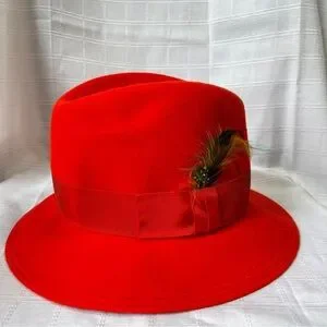 Stylish orangey red fedora style hat featuring a decorative feather accent. Perfect for adding a bold touch to any outfit. Vintage 1960's. Item is preowned and has a couple of very small scratches and spots - see pics.
